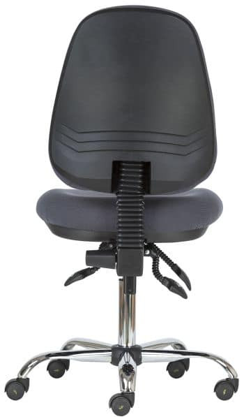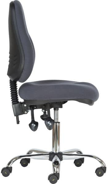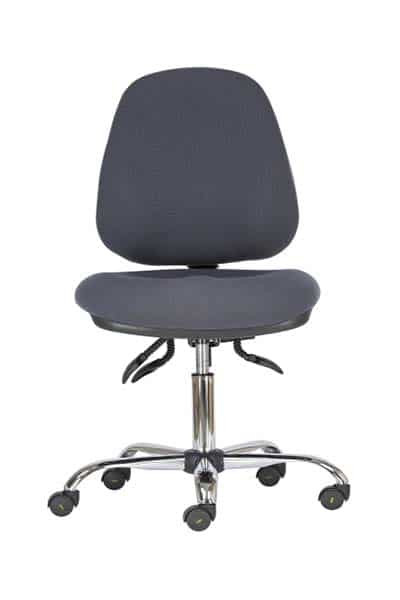 ESD szék, sötétszürke vezetőképes szövettel, vezetőképes háttámlával és görgőkkel