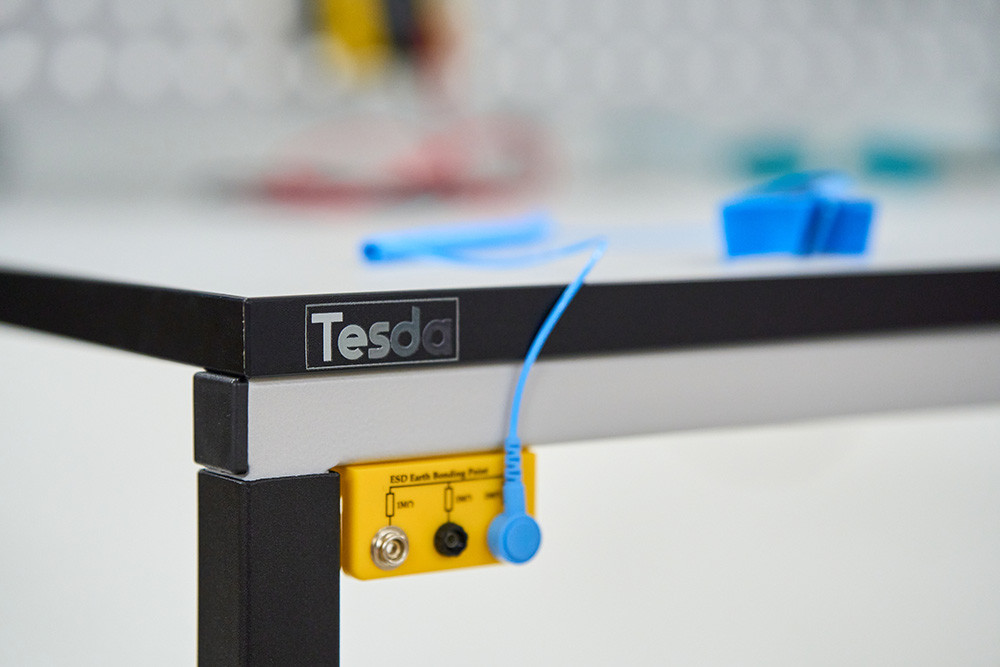 A gyártás során az elektrosztatikus kisülések kárt tehetnek az érzékeny alkatrészekben, a Tesda ESD ellen védett munkaasztalok az elektrosztatikus feltöltést a munkafelületen és egy földelőkábelen keresztül vezetik le, alkalmasak a dolgozók egészségének és az elektronikus alkatrészek védelmére.